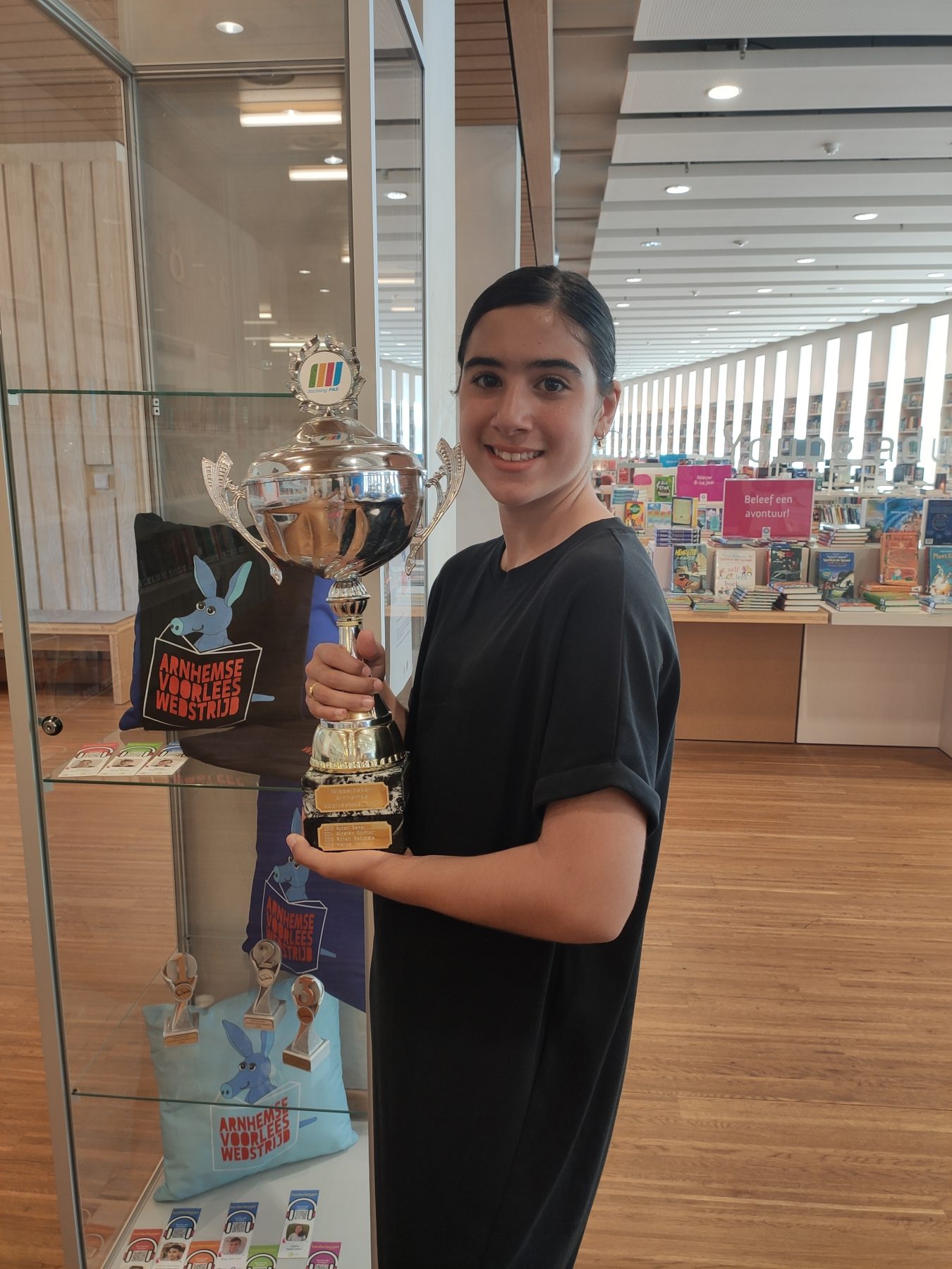 Sinds deze zomer staat er bij de kinderafdeling van Rozet Bibliotheek, op de 2e verdieping, een vitrinekast ter ere van de Arnhemse Voorleeswedstrijd. Deze wedstrijd is bedoeld voor leerlingen uit groep 7 en 8 van alle Arnhemse basisscholen.
