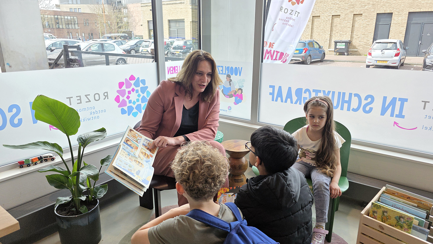 Omdat Rozet voorlezen belangrijk vind, en bovendien het koestert dat er voorgelezen wordt in een eigen taal, las Kundić vervolgens in haar moedertaal voor uit een Bosnisch kinderboek. In de rest van de gemeenschappelijke ruimtes van De Omnibus was er gezellige drukte met allerlei creatieve activiteiten, muziek uit de wijk en veel lekkers. Er liepen veel blije gezichten rond; tieners die de hele boekenkast afsnuffelden, kinderen met vragen over openingstijden en blije moeders met dit alternatief sinds de Bibliobus niet meer komt.